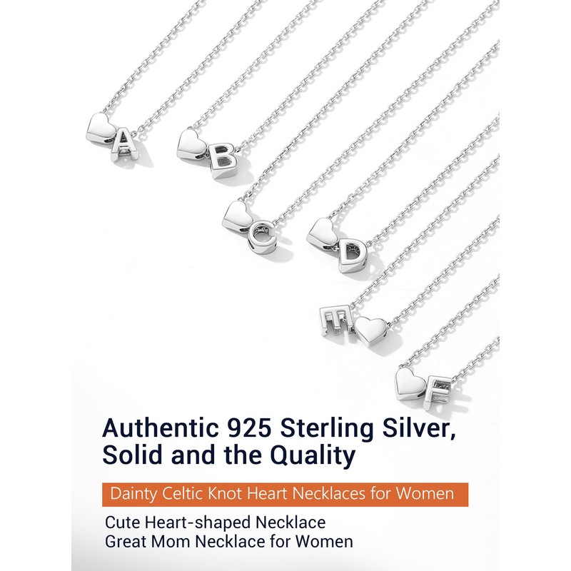 PROSILVER Small Initial Necklaces for Women Sterling Silver B Letter Necklace Heart Pendant Thin Chain