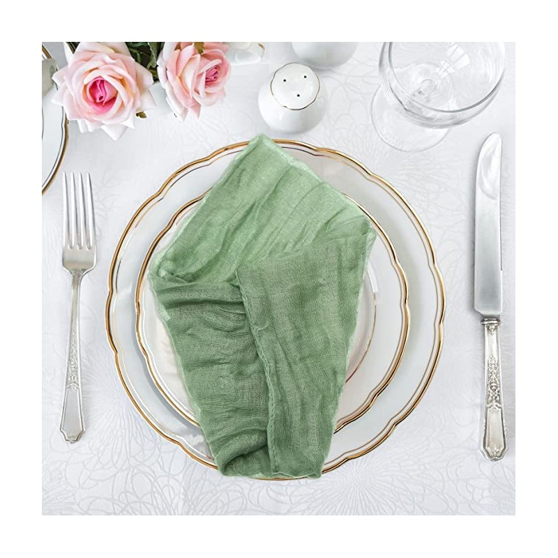 Prosky 6 PCS Gauze Cheesecloth Napkins , Chiffon Dinner Napkins Cloth with 6 PCS of Rope , Table Napkins , Cheesecloth Napkins , Napkin , Table Napkins Cloth Set of 6 ( 18 x 18 Inch ) (Sage Green)