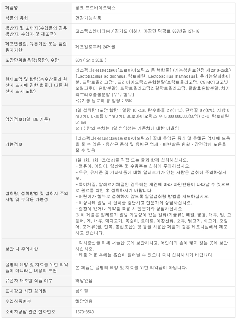 | 제품명 | 핑크 프로바이오틱스 |