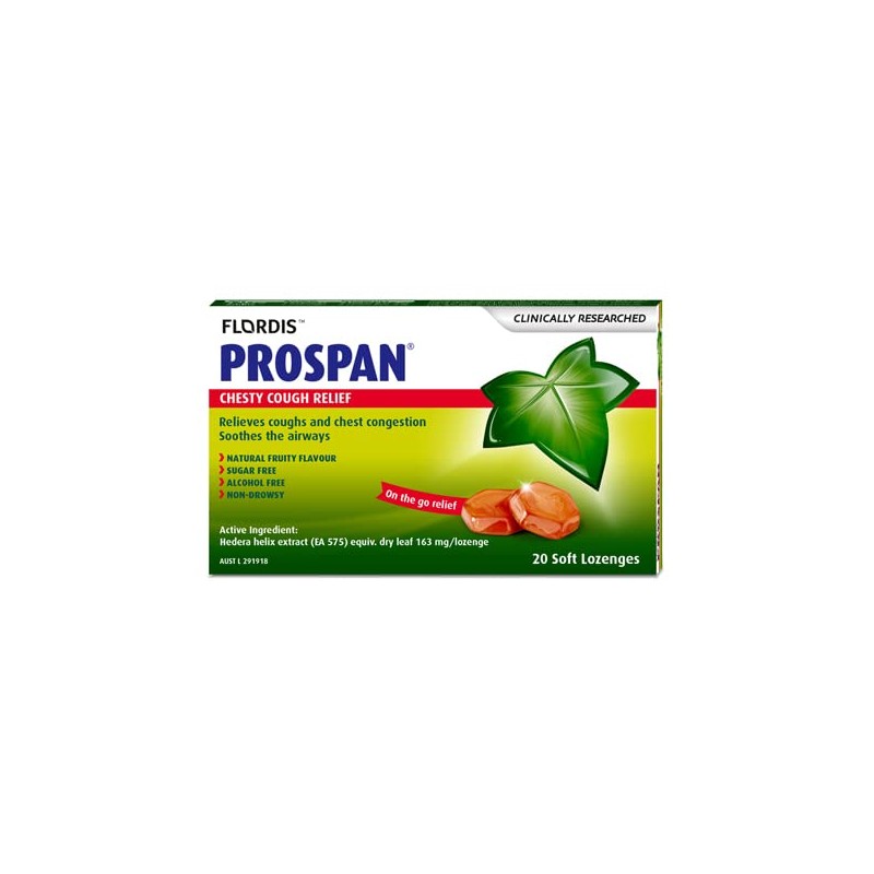 Prospan Chesty Cough Relief 20 Soft Lozenges Ivy Leaf Extract Sugar Free Flordis