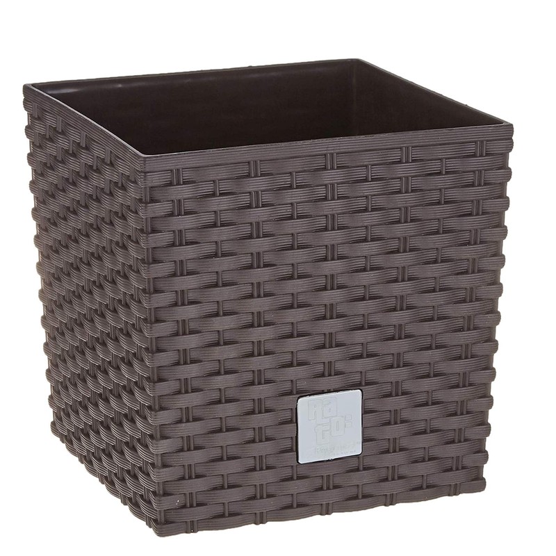 Prosper Plast Rattan Planter Dark Brown, Small Size 17cm Square Shaped Flower Pot