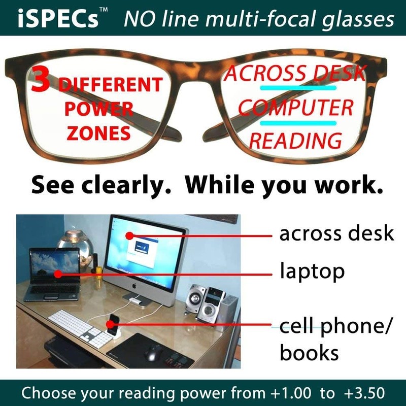 proSPORT Multifocal Progressive 3 Magnifications in 1 Lens No Line Computer Gaming Reading Glasses for Men & Women (Kennedy - Black & Black/Med to Large, 1.00, Multiplier_x)