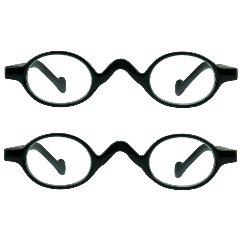 proSPORT Oval Reading Reader Glasses +1.25 2 Pairs of Black Frame Men Women Plastic Retro Classic Vintage Small Frame