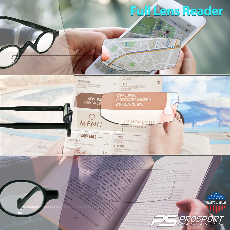 - WHAT ARE SUN READERS : A sun reader is a combination of both reading glasses and sunglasses. UNLIKE bifocal sunglasses where the reading portions are only at the bottom of lens, the ENTIRE LENS of a full lens sun reader is fully magnified and tinted with 100 % UV protection.