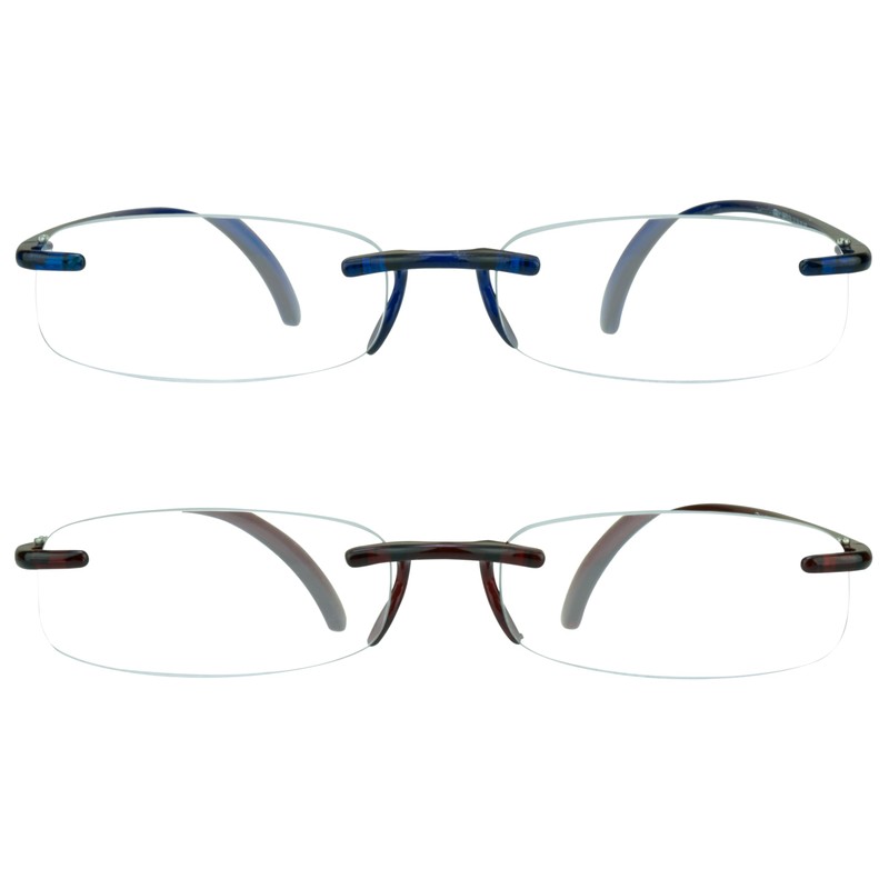 proSPORT Reading Glasses +3.25 Combo Blue and Red Frame Rimless Full Lens Reader Ultra Lightweight Flexible Men Women