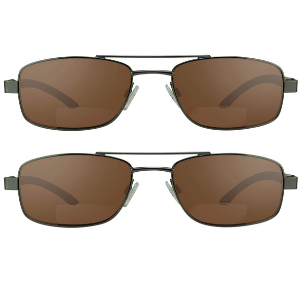 proSPORT Square Aviator 2 Pairs Combo +2.00 Bifocal Sunglasses Gunmetal Frame with Highl Definition HD Blue Light Blocking Lenses.