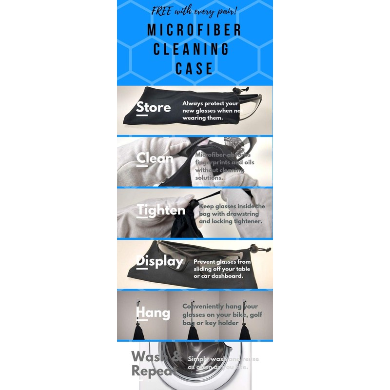 - FREE MICROFIBER CLEANING POUCH : While the sunglasses are in the pouch, simply rub the lenses with the soft case to wipe off fingerprints, smudges and water marks. Drawstring with tightening closures keeps the reading glasses secure inside.