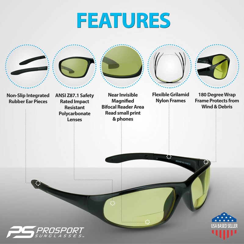 proSPORT Yellow Bifocal Safety Glasses Z87 for Men and Women for Night driving and riding