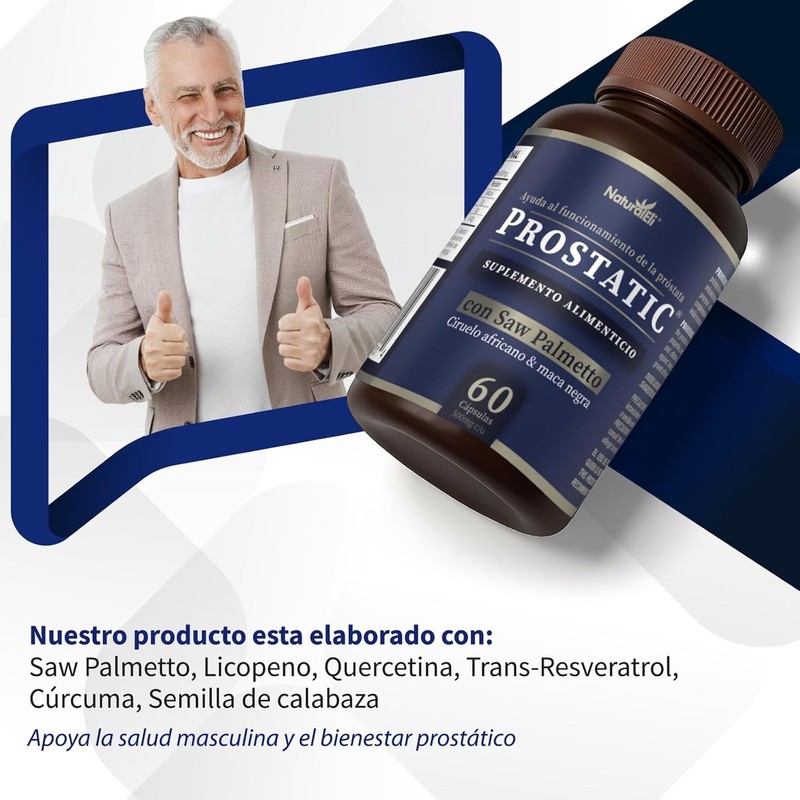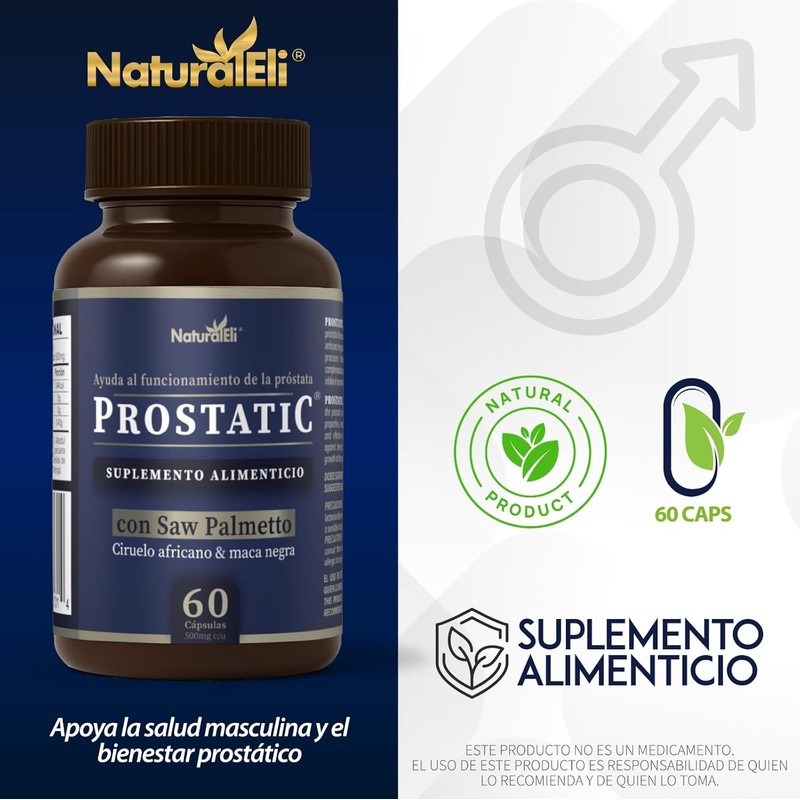 Prostatic es una fórmula premium diseñada especialmente para hombres que buscan fortalecer su bienestar integral. Contiene una mezcla de extractos botánicos cuidadosamente seleccionados y micronutrientes esenciales como: Ortiga raíz, Pygeum africanum y semilla de calabaza, que aportan fitonutrientes valiosos. Refuerzos como beta-sitosterol, zinc, licopeno, quercetina y resveratrol, ingredientes modernos que complementan un enfoque completo. Una cápsula dos veces al día es suficiente para complementar tu rutina diaria con ingredientes respaldados por estudios y uso tradicional. Ideal para hombres que valoran una vida activa, equilibrada y con visión a largo plazo.