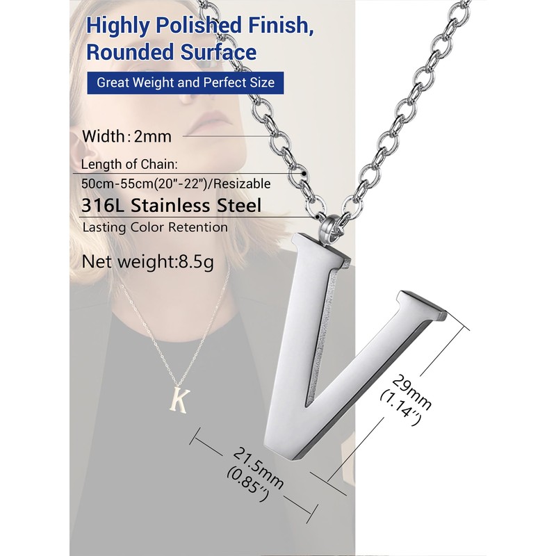 316L Stainless Steel Initial Necklace A-Z in Gold/Silver/Black Tone