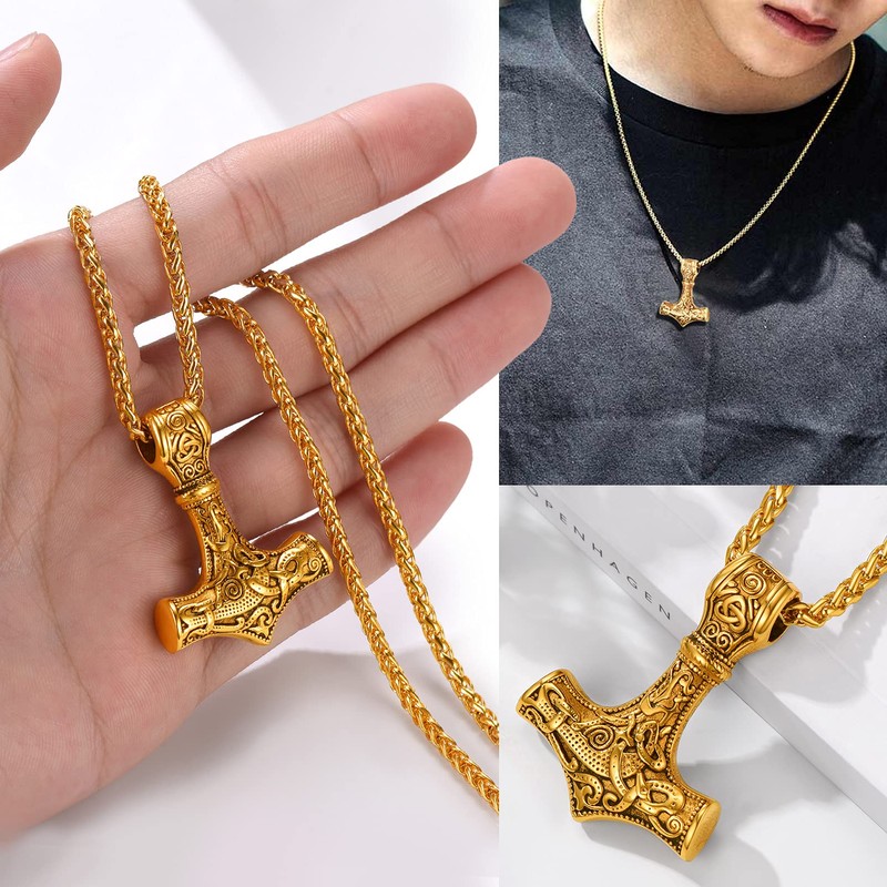 Prosteel Gold Thors Hammer Necklaces For Men Boy Mjolnir Pendant Viking Celtic Jewellery