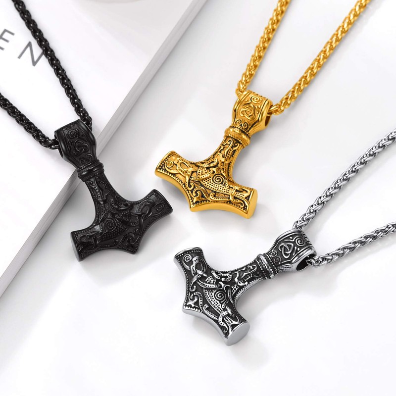 PROSTEEL Thor's Hammer Necklaces for Men Amulet Pendant Stainless Steel Nordic Mjolnir Viking Norse Jewelry