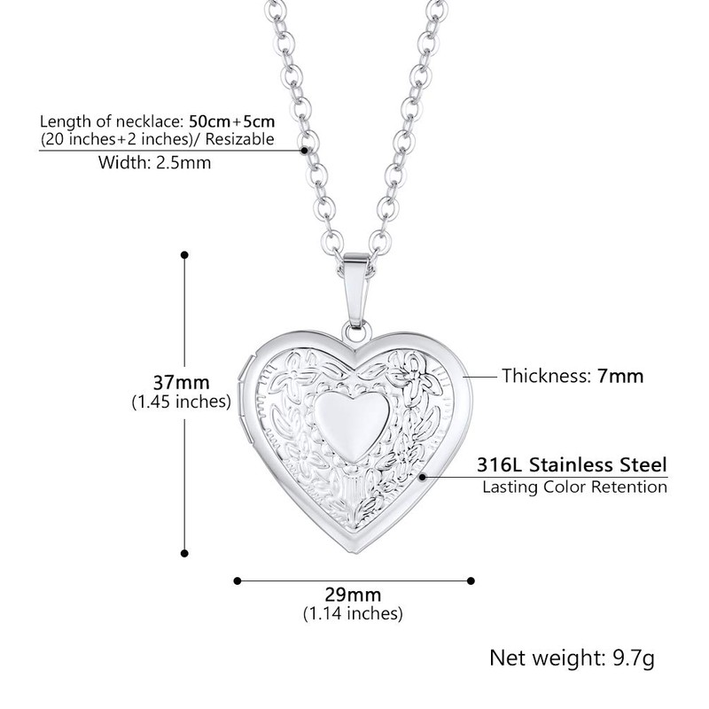 Prosteel Women's Necklace Customisable Heart Pendant Necklace Locket with 55 cm Chain Stainless Steel / 18 K Gold Plated Photo Images Amulet Floating Locket Gift for Mother's Day Valentine's Day