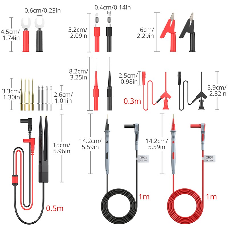 • Safe and Reliable--- CAT 1000V 20A Test Leads are Double-insulated with Flexible Silicone Leads, Making Test Leads More Flexible and Reliable. Test Leads Can Be Used with Proster Clamp Meters, Multimeters
