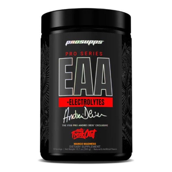 Eleva tu rendimiento con ProSupps® Pro Series EAA + electrolitos. Creada con el ícono del fitness Andrei Deiu’, esta mezcla premium de BCAA, EAA y electrolitos garantiza una hidratación, fuerza muscular y crecimiento óptimos. Supere sus límites y manténgase hidratado con ciencia de vanguardia diseñada para quienes luchan por alcanzar la grandeza.