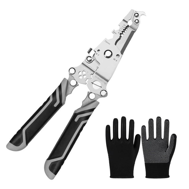 Set includes 1 pcs wire stripper tool and 1 pair of gloves, long life, ideal tool choice in a tool kit.