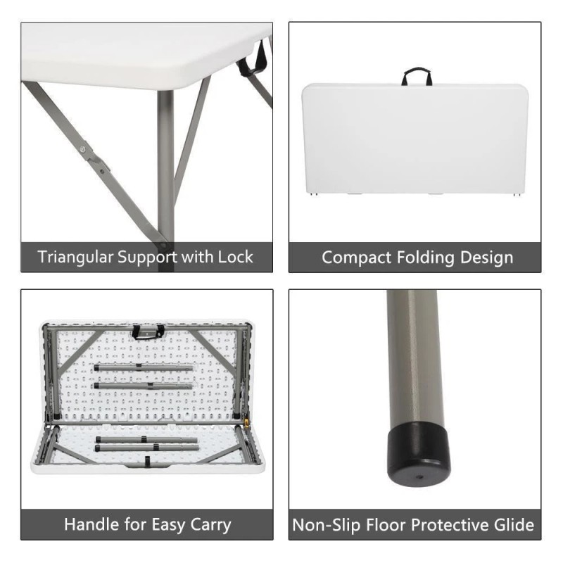 34" Blow Molding Foldable Square Table is great for entertaining and can be used as a serving table, game table, or outdoor dining table. Its collapsible design makes it quite space-saving. deal for family reunions, picnics, camping trips, buffets or barbecues. In a word, it is ideal for family reunions, picnics, camping trips, buffets or barbecues.