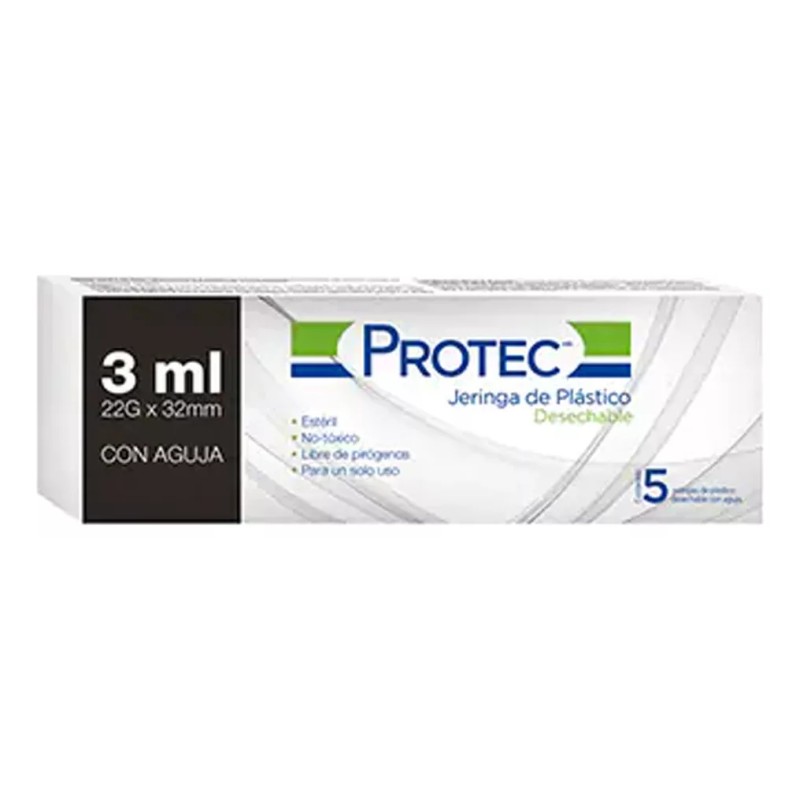 Protec Jeringa HiPodérmica 3ml 22gx32mm Protec 5 Cajas C/5pzas C/u Capacidad En Volumen 3 Ml