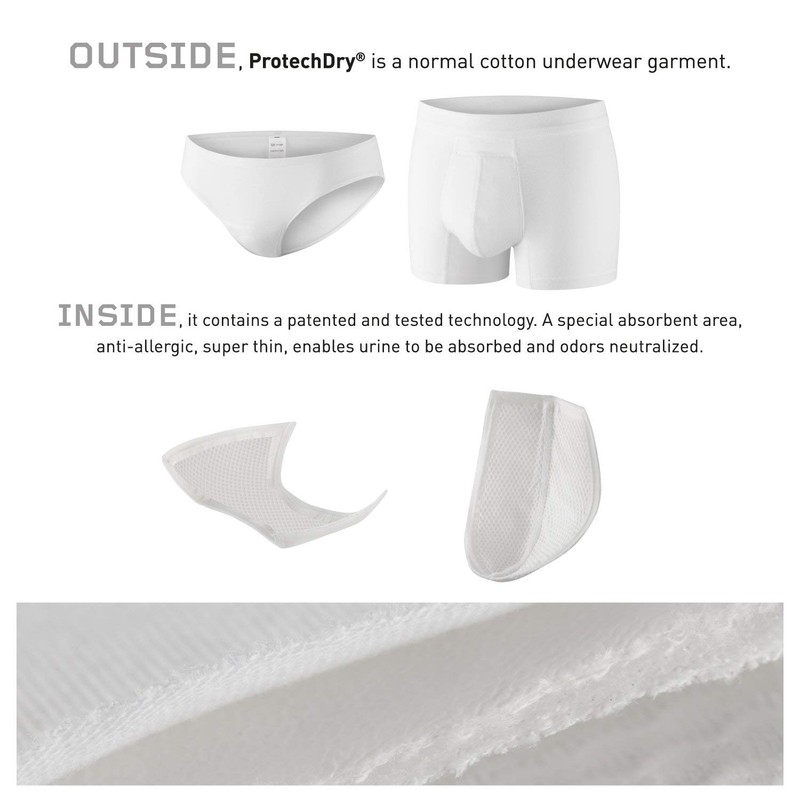 - Washable and reusable - can withstand up to 100 washes. Machine wash up to 104 F. Do not air dry. Do not use bleach. No fabric softener. One Protecdry = 100 disposable underwear. PERFECT FIT & SEAMED SEAMS - 5 sizes available for a perfect fit.