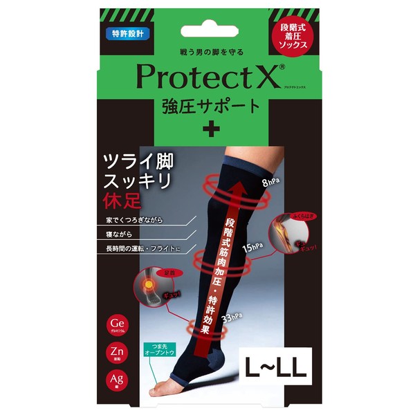Protect X (プロテクトエックス) メンズ オープントゥ 着圧ソックス 強圧サポート (膝上L~LL)