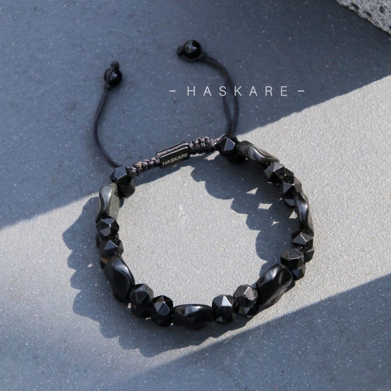 - 【STYLISH AND UNIQUE DESIGN】This men's bracelet features a skillful combination of two shapes of obsidian beads: oval and polyhedral beads, creating a unique yet minimalist look. The use of natural obsidian stones gives it a timeless charm and a distinct personality.