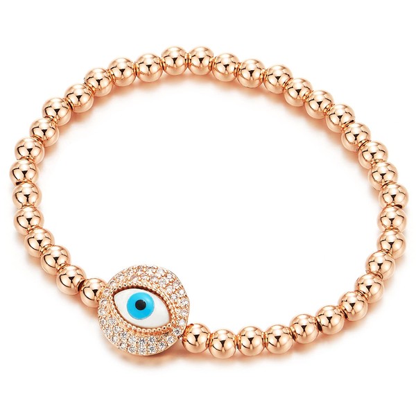 - Evil eye rose gold beads bracelet for men and women with cubic zirconia