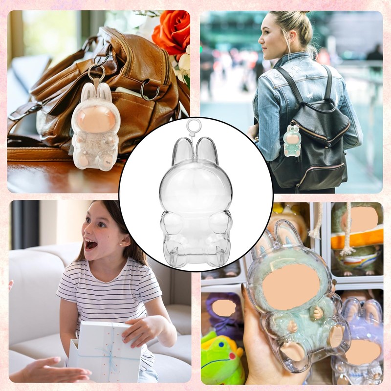Protective Case for Doll, Acrylic Display Case with Dustproof Cover and Keychain, Miniature Display Case for Monsters Accessories, Transparent Mini Box for Protection and Showcase(No Doll)