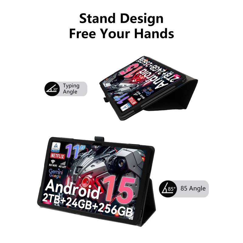 Protective Case for TABWEE W90/T90 11 inch Tablet Android 14 Tablet with Hand Strap & Stand& Anti-Drop Feature - Sleek and Simple Design,Black