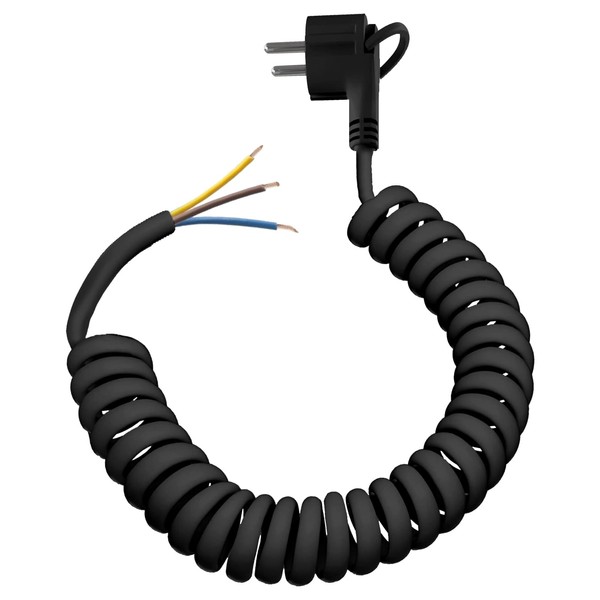 Protective contact extension, spiral extension stretches from 0.55 m to 2 m max, extension cable IP20.