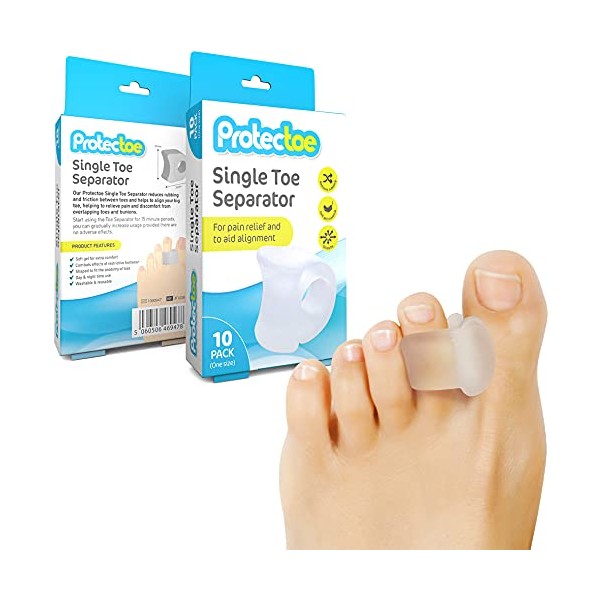 Protectoe Single Gel Toe Separator for Overlapping Toes, Toe Spacer - Box of 10 Gel Separators