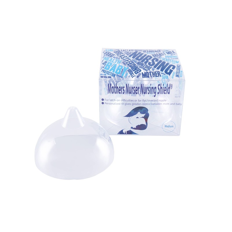 Protector de pezón utilizado para la lactancia materna, ayuda a las madres con dolores de pezón, problemas de enganche, pezones planos o invertidos - por Mothers Nurser Nursing Shield®