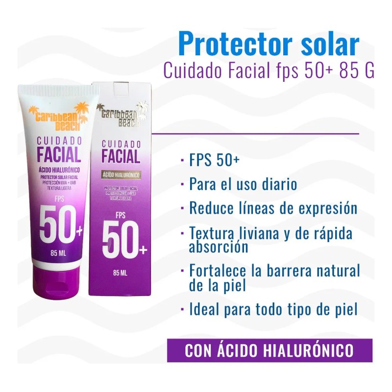 Protector Facial Caribbean Fps50 Ácido Hialurónico 85ml