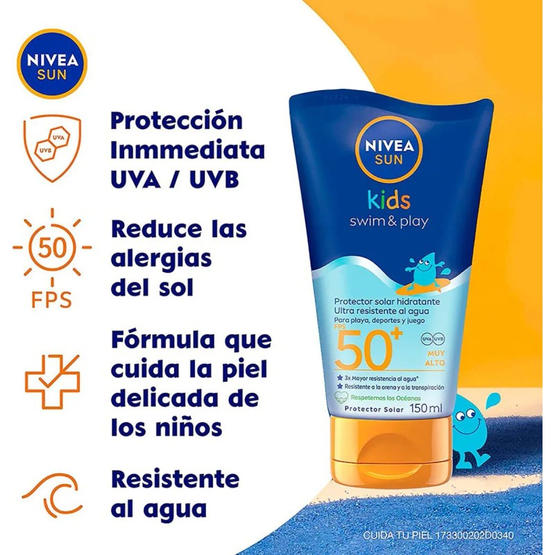 🧴 Nivea Sun Swim & Play FPS 50+, aprobado por pediatras, es ideal para niños a partir de los 3 años que aman el sol y el agua. Con cada uso, no solo cuidas su piel, sino que también reduces el riesgo de alergias solares, asegurando que cada rayo de sol sea solo motivo de alegría.