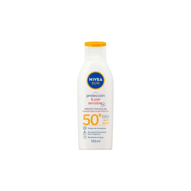 El protector solar de NIVEA SUN para piel sensible con FPS 50+ y su fórmula enriquecida con Vitamina E, ayuda a minimizar el riesgo de alergias causadas por el sol en pieles sensibles, dejando la piel suave y tersa. Efectivo sistema de filtros UVA/UVB que brindan protección inmediata y ayuda a prevenir quemaduras solares y el envejecimiento prematuro de la piel. Resistente al agua. Textura ligera.