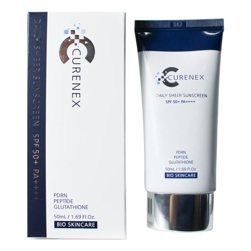 Curenex Daily Sheer Sunscreen SPF50+ PA++++ es un protector facial coreano de amplio espectro (UVA y UVB), ideal para piel sensible y uso diario. Su textura ligera se absorbe rápido y no deja residuos blancos.