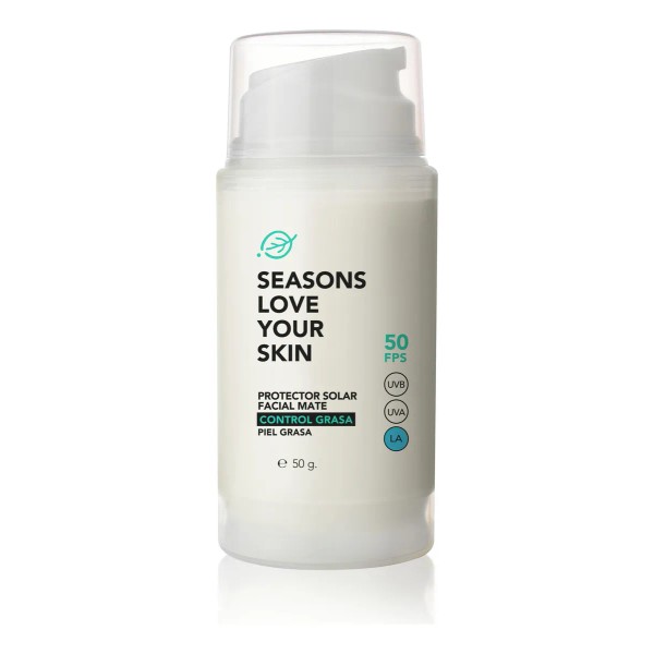Protector Solar Facial Mate FPS 50 Con Niacinamida Seasons, 45ml – Control de Brillo y Alta Protección