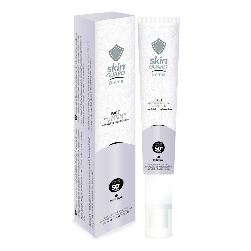 Protege tu rostro con la innovadora fórmula del Protector Solar Facial Mineral con Ácido Hialurónico FPS 50 de Skin Guard, 50 ml. Este bloqueador en crema ofrece una alta protección mineral (FPS 50) contra el daño solar, mientras que el ácido hialurónico hidrata profundamente tu piel. Su tono transparente se adapta a cualquier tono de piel, y su textura ligera se absorbe sin dejar sensación grasosa ni residuos. Es hipoalergénico, resistente al agua y apto para todo tipo de piel, incluso desde los 6 meses de edad. Avalado por dermatólogos, ayuda a proteger tu piel de los efectos dañinos del sol y a reducir manchas, manteniendo tu rostro saludable y radiante.