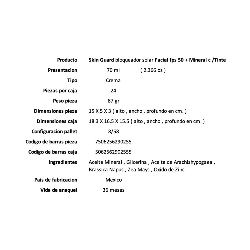 Protector Solar Facial Mineral Fps 50+ 70 ml con tinte Biodegradable con Óxido de Zinc y Aloe Vera (Beige)