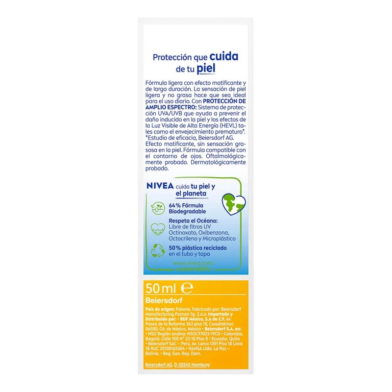 Amigable con tus Ojos: Probado oftalmológicamente para garantizar la seguridad alrededor de los ojos. Protege tu rostro y mantén un tono uniforme con NIVEA SUN Control De Brillo Tono Claro FPS 50.