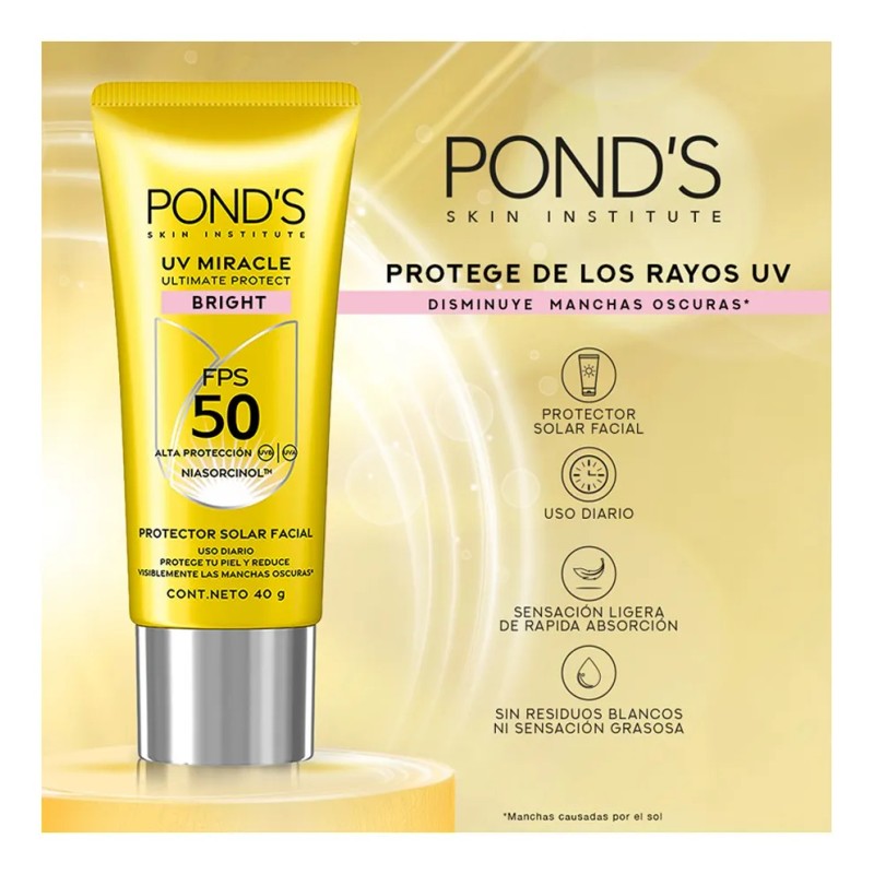 Protector Solar Facial POND's 50 FPS UV Miracle Bright, Anti-Manchas con Niasorcinol 40gr