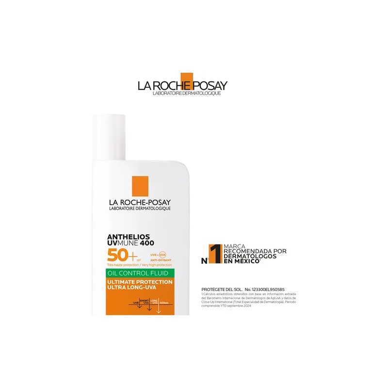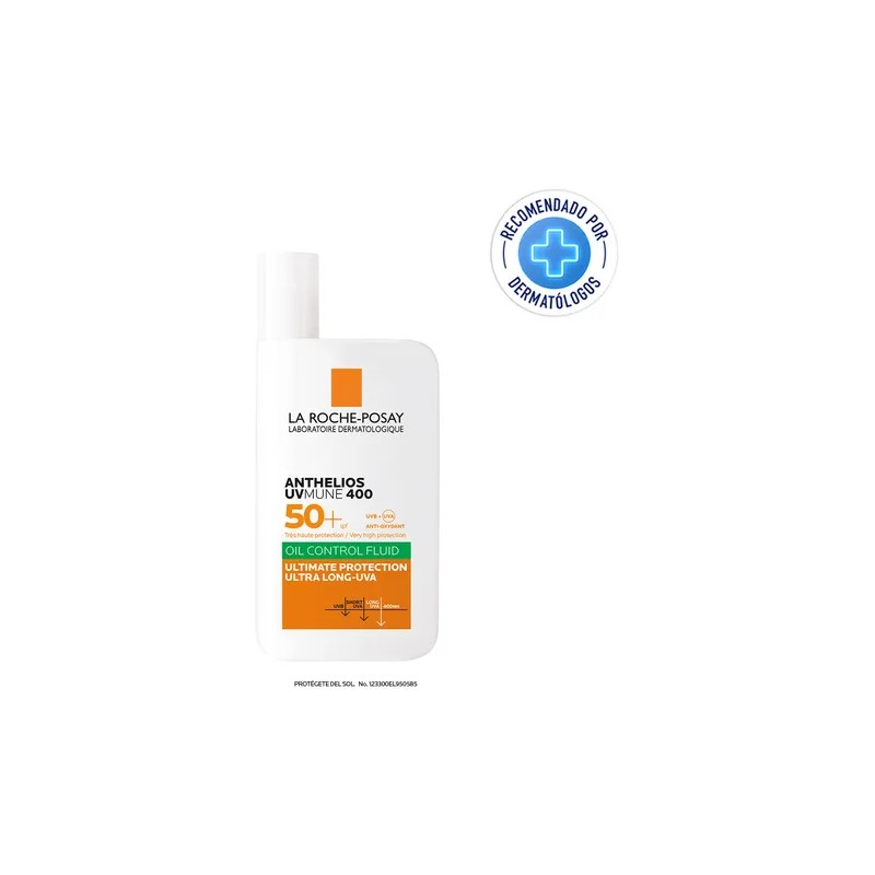 Protector solar Facial Anthelios UVMUNE 400 Oil Control Fluido, con la máxima protección UVA/UVB.
