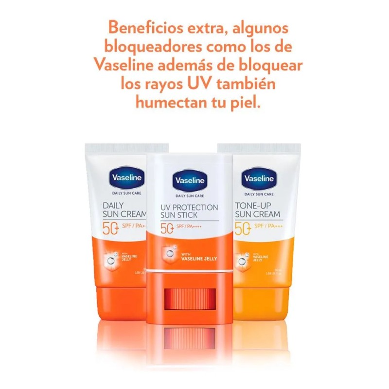 El Protector Solar en Barra Vaseline FPS 50 ofrece una solución práctica y eficaz para proteger tu piel de los dañinos rayos UVA y UVB, al mismo tiempo que proporciona una hidratación profunda. Su fórmula avanzada combina los beneficios de la petrolatum (jalea Vaseline) con una alta protección solar, ideal para el uso diario, especialmente en zonas delicadas como el rostro, labios, cuello y manos.
