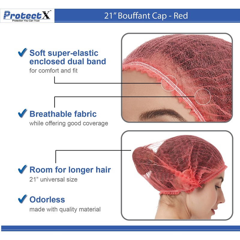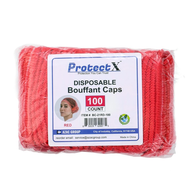 ProtectX ProtectX Disposable Bouffant (Hair Net) Caps Hair Head Cover Nets 21 (Red 100 pack)