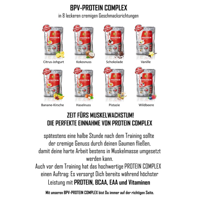 Protein Complex 500g | 3 Komponenten Protein aus (Whey, Casein, Ei) | Reich an BCAA, EAA und Vitaminen