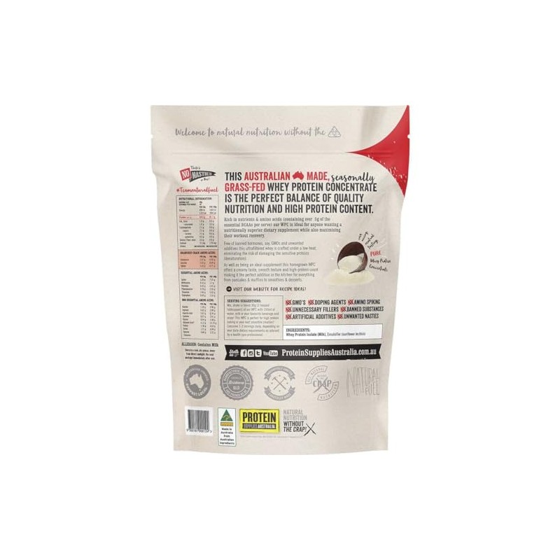 Protein Supplies Australia Pure Whey Protein Concentrate Powder 500 g,, Pure 500 grams