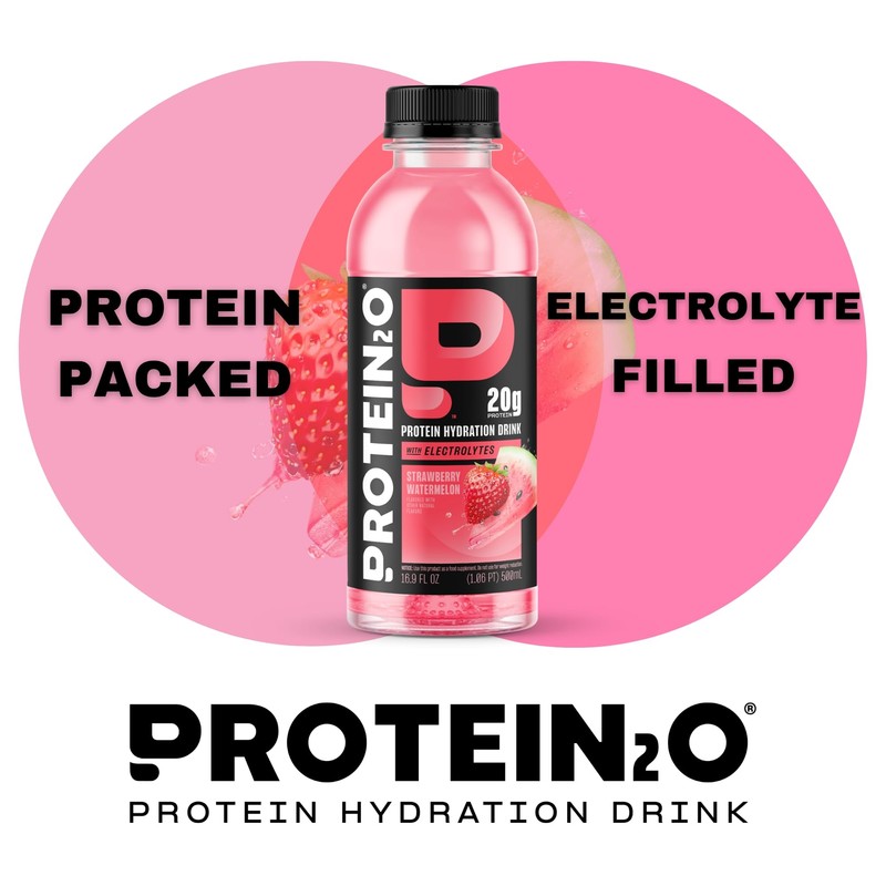 Protein2o Protein2o 20g Whey Protein Isolate Hydration Drink, 350mg of Electrolytes, Vitamins B5 & B6, Sugar Free, Strawberry Watermelon, 16.9 oz Bottle (12 Count)