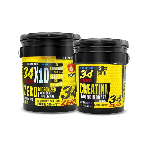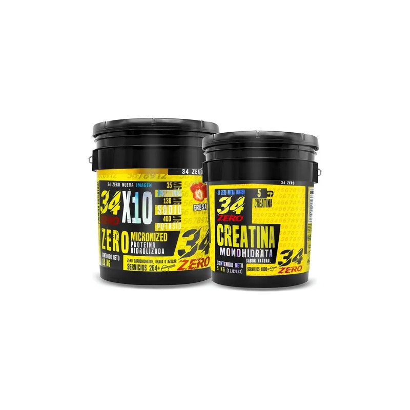 Proteína Isolate 10 Kg + Creatina Monohidratada 5 Kg 34 Zero Sabor Fresa - Natural