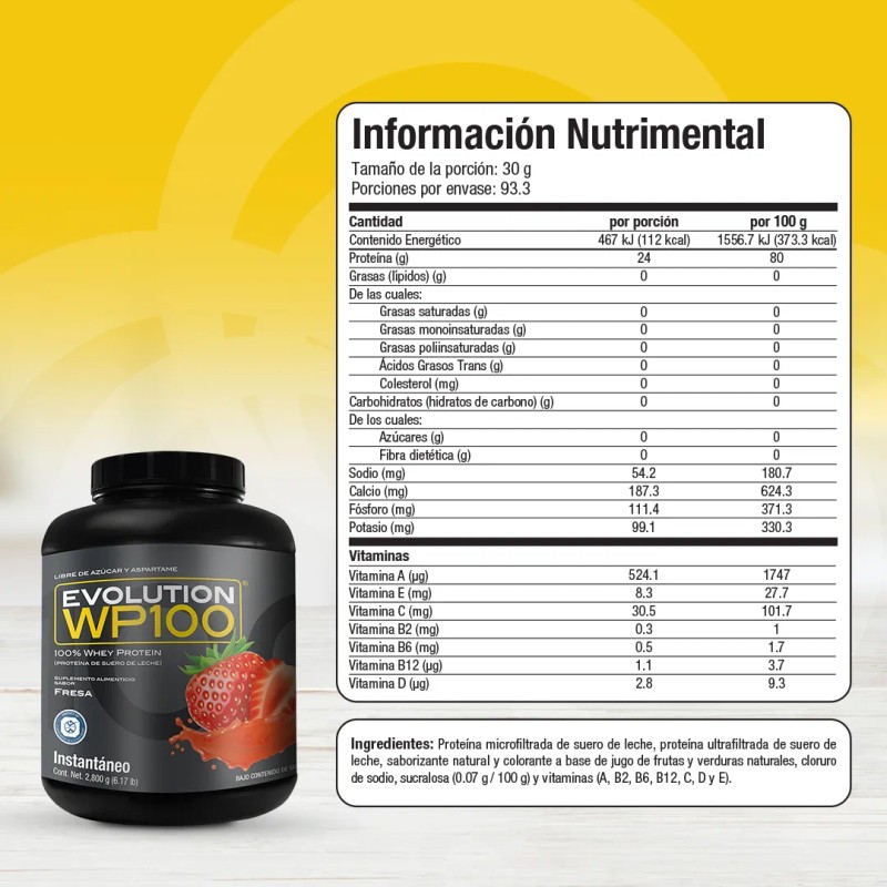 🌟 Proteína Suero de Leche WP100 Evolution – 2.8kg Sabor Fresa 🍓💪