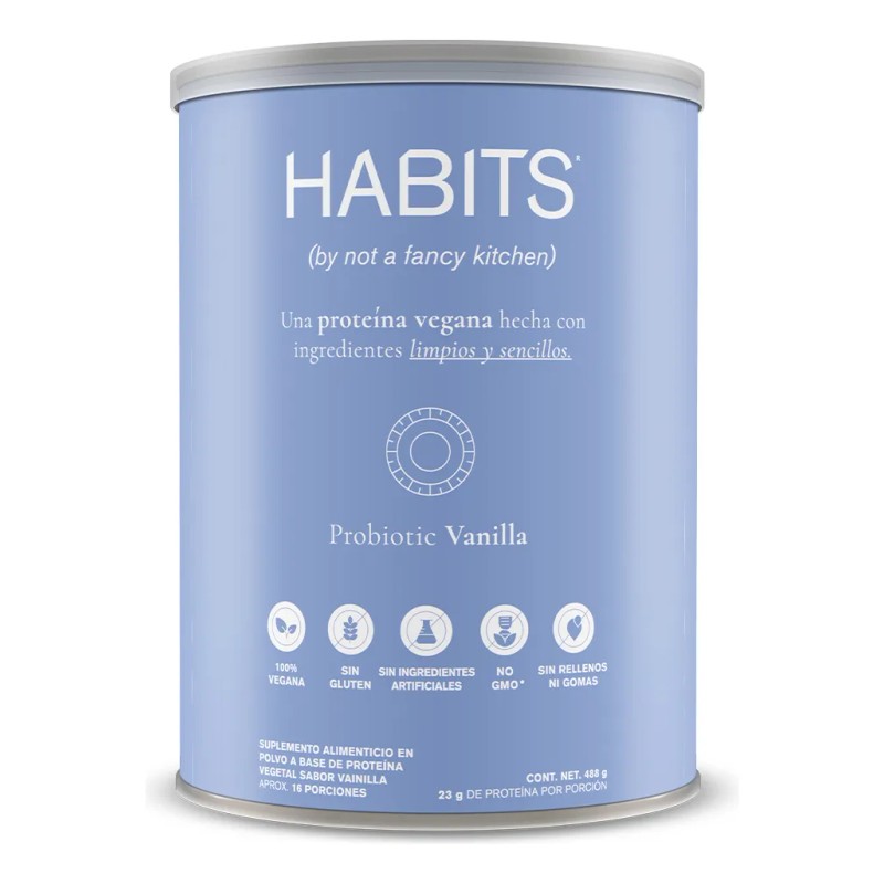 Descubre Habits Proteína Vegana Probioticos, un suplemento diseñado para quienes buscan una fuente de proteína de alta calidad sin comprometer su estilo de vida. Cada porción ofrece 23.5 gramos de proteína, derivada de concentrado de proteína vegetal de chícharo y arroz integral, lo que la convierte en una opción ideal para veganos y personas con intolerancias, ya que es libre de gluten y lactosa.
