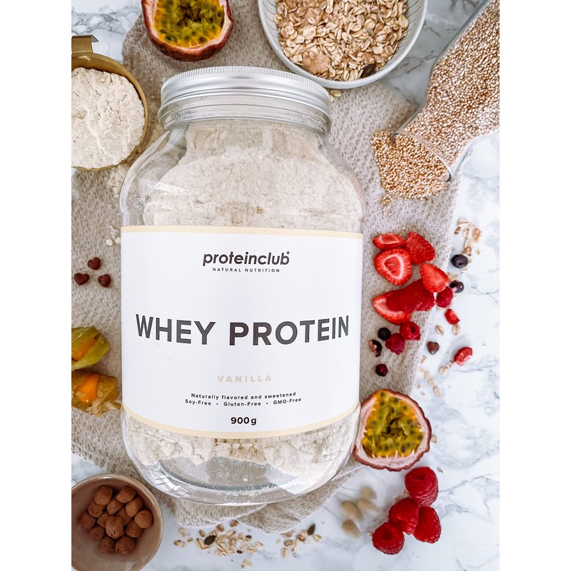 Proteinclub Natural Whey Protein without Additives, Natural Protein Powder without Artificial Flavourings and Sweeteners, Protein Powder with Stevia, Gluten Free, Soy Free, Made in Germany, 900 g